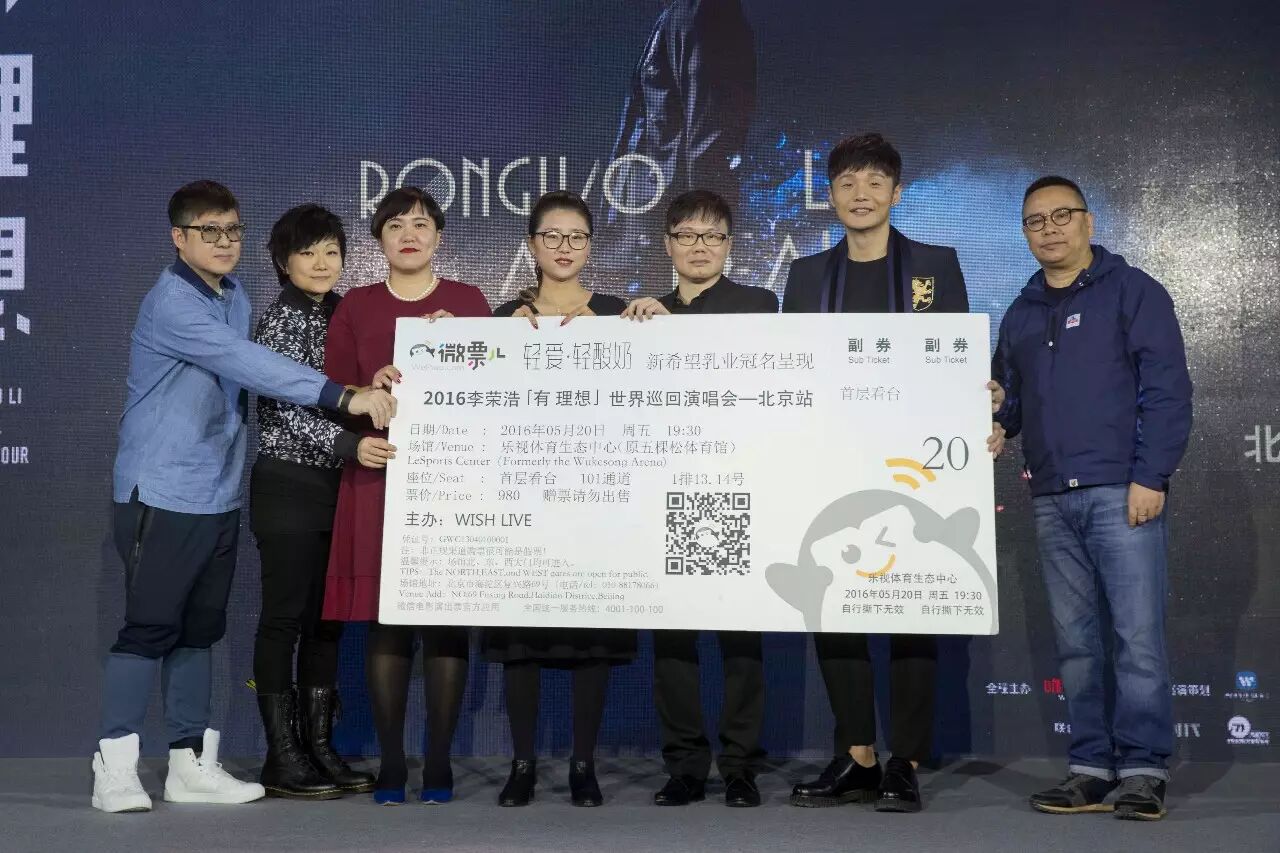 此外,李荣浩此次巡演与移动票务平台微票儿合作,歌迷不仅可通过微信钱包“电影演出票”或“微票儿”APP入口实现演唱会随时随地便捷购票,还可以在微信朋友圈广告中为李荣浩巡演加油点赞。与此同时,2016李荣浩“有理想”世界巡回演唱会北京站等10场演唱会由新希望乳业品牌“轻爱.轻酸奶”冠名呈现,除了品牌的理念和生活态度与李荣浩所倡导的“理想精神”相契合外,也希望可以借由李荣浩强大的号召力将品牌推广出去——就像李荣浩的音乐一样,成为大家的新宠。