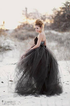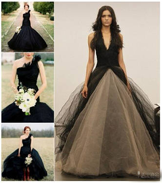 老人家的传统思想认为只有参加葬礼才穿黑色,不过,现在许多品牌都有推出黑色婚纱,如Vera Wang,如果家里不反对,你又是有个性的女孩,不想跟众人一样穿着普通的白色婚纱,可以试试有华丽的马甲设计或是裙襬拥有层次感的婚纱,都是不错的选择。