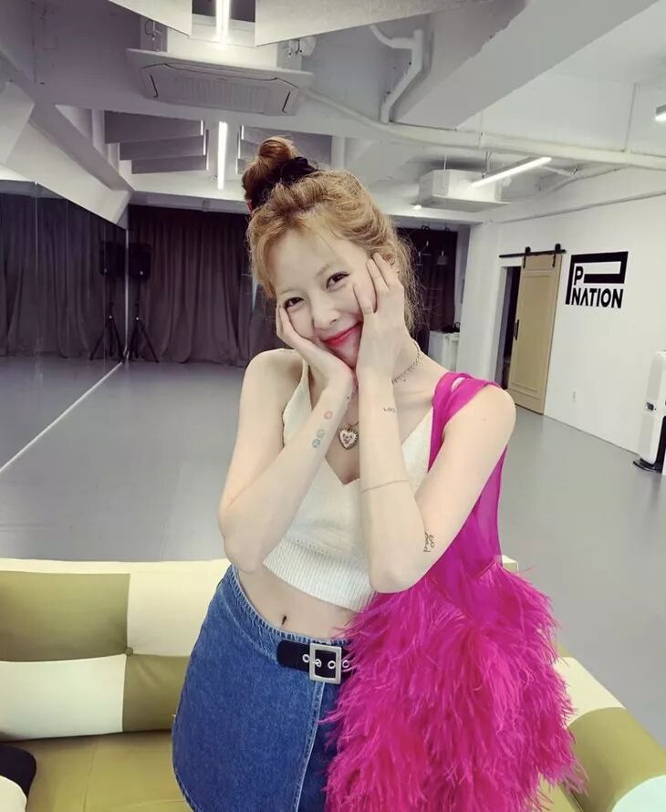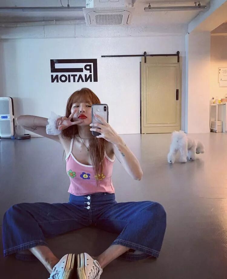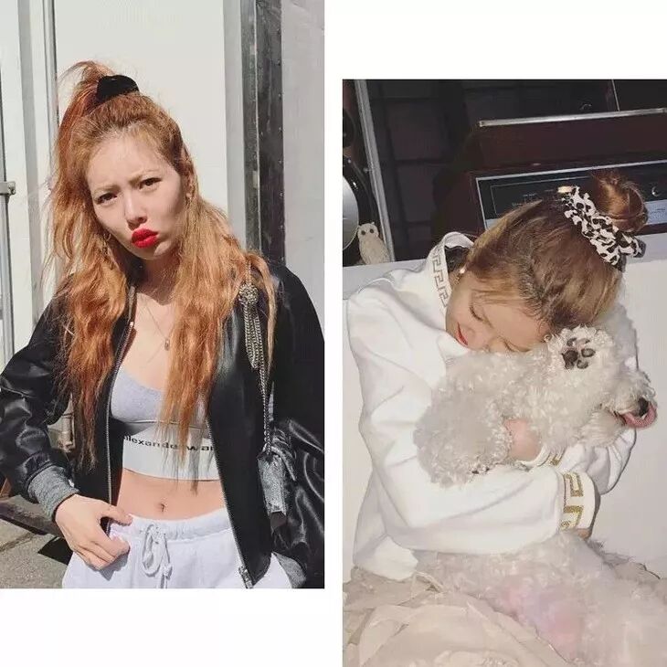泫雅作为玩弄时尚单品和潮流的好手,除去之前大热的彩色发夹,最近各式各样的发圈也频频在她的ins上出现,随便一扎就非常加分。橘色印花发圈配上浅色发色显得更加青春洋溢,点亮了整个夏天。