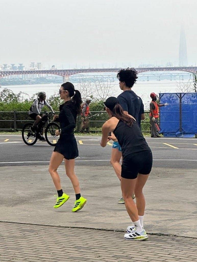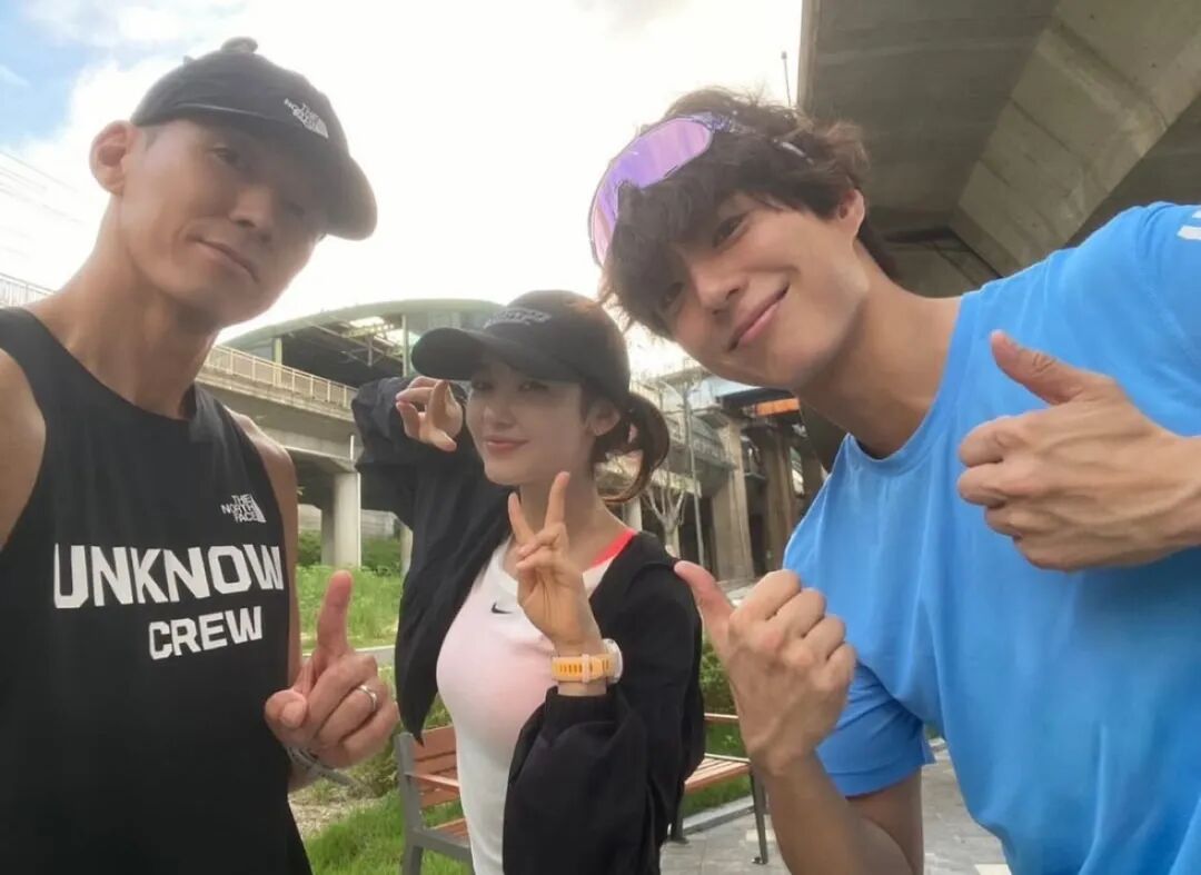 照片中,朴宝剑与DANIELLE身穿清爽的运动服,步伐利落、节奏一致,俨然一副专业选手备战的架势,身旁还有韩娱界公认的“跑步达人”歌手SEAN同行。大家这才恍然大悟,原来他们是正在为即将到来的跑步大赛做准备!