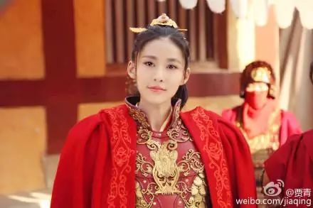又比如贾青饰演的公孙宝月,是个戎装美人,一身红色铠甲英姿飒爽