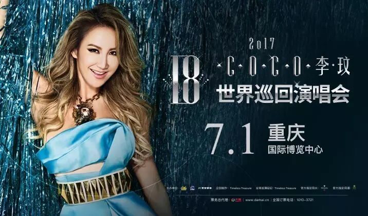 2017 CoCo李玟 「18」世界巡回演唱会7月1日空降重庆热力开唱!华丽的阵容搭配李玟专属「18」回忆所蕴含的满满诚意,共同来期待这场热辣的视听饕餮如何在重庆嗨翻盛夏!