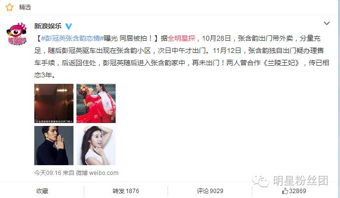 据全明星探,10月28日,张含韵出门带外卖,分量充足,随后彭冠英驱车出现在张含韵小区,次日中午才出门。11月12日,张含韵独自出门疑办理售车手续,后返回住处,彭冠英随后进入张含韵家中,再未出门!两人曾合作《兰陵王妃》,传已相恋3年。