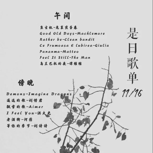 节目开始,一首摇滚乐《Demons》送给大家。歌曲节约,时间,省去了前奏,直接进入激昂的音乐状态,歌词故事亦是充满了力量。希望这首充满力量的歌曲,能给大家即将疲软的生活注入活力,在这个寒冷的十一月,依旧充满热情。