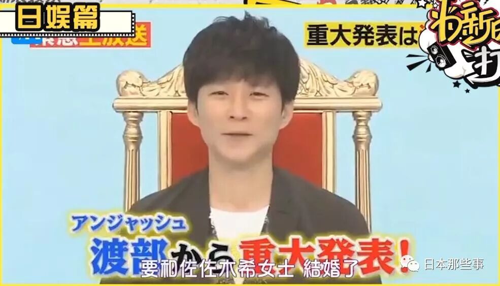 2017年4月9日,搞笑艺人渡部建在节目上宣布与佐佐木希结婚,他笑容满面,自曝求婚语录是:“请和我结婚吧,因为我们年龄相差比较大,我会努力活很久,所以我们结婚吧。”同日两人联名向媒体发表结婚报告,佐佐木希也在INS上向粉丝报告结婚一事。→【佐佐木希要结婚了?新郎真的是他!】