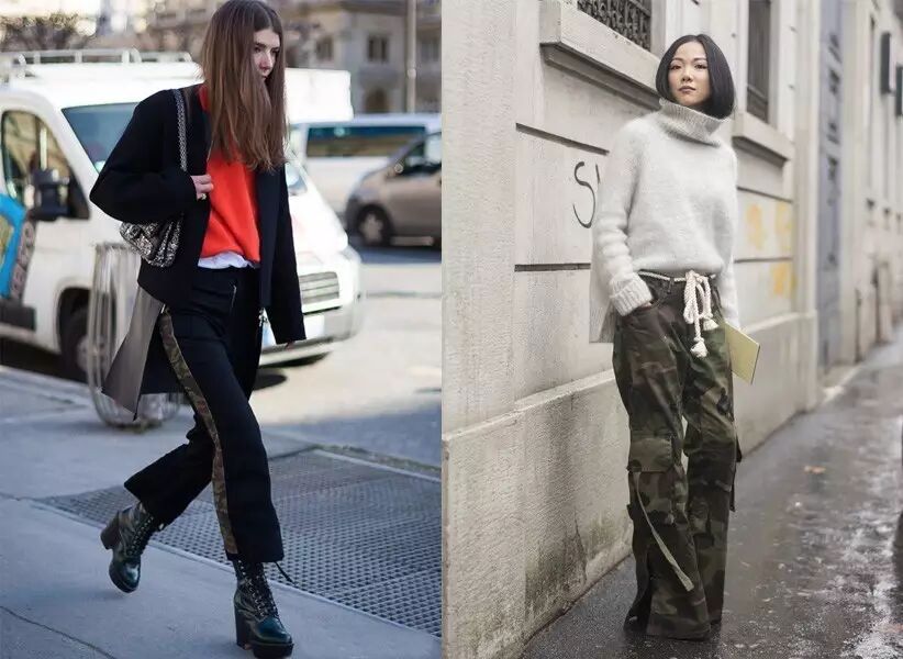 偏爱阔腿裤的话,迷彩款比满大街的性冷淡款会迷人的多。选择一件高龄毛衣,出来的飞欧也真是没谁了~前提是身高要足够,身高不够可恨天高来凑!