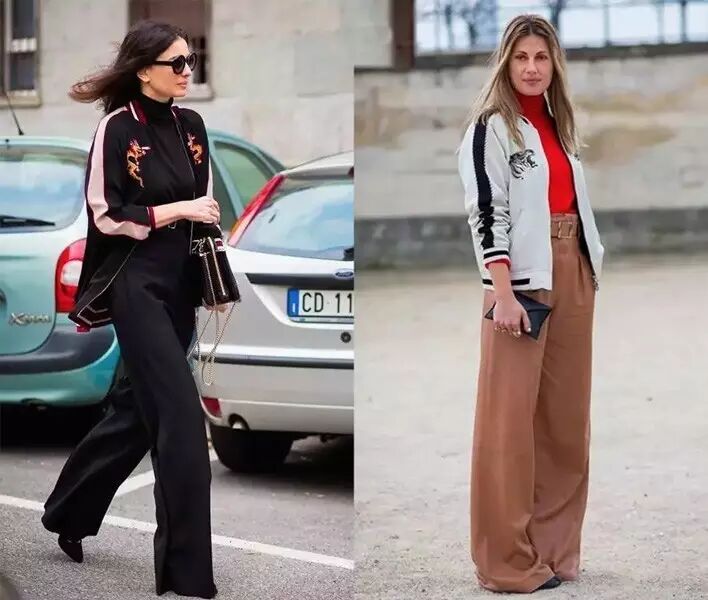 与阔腿阔、高领毛衣搭在一起的时候,注意色彩的把控就OK了,不要超过3色,尤其是刺绣比较鲜艳的话。