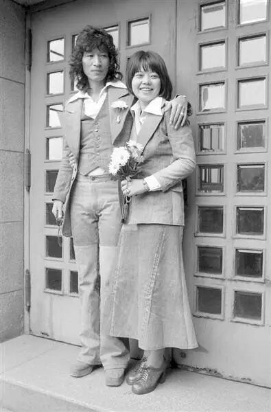 1973年她与摇滚歌手内田裕也交往5个月后结婚,当时的树木希林与丈夫穿着牛仔裤在築地本愿寺举办的婚礼。