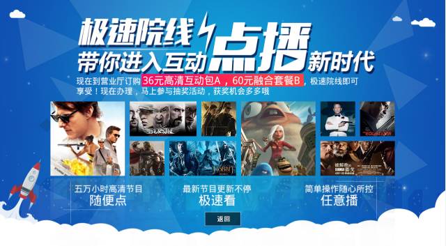 极速院线,高清海量节目任您点播! ● 院线大片接档影院! ● 黄金热剧同步各大卫视! ● 少儿寓教于乐内容丰富多彩! ● 综艺娱乐只要您喜欢一个都不少!
