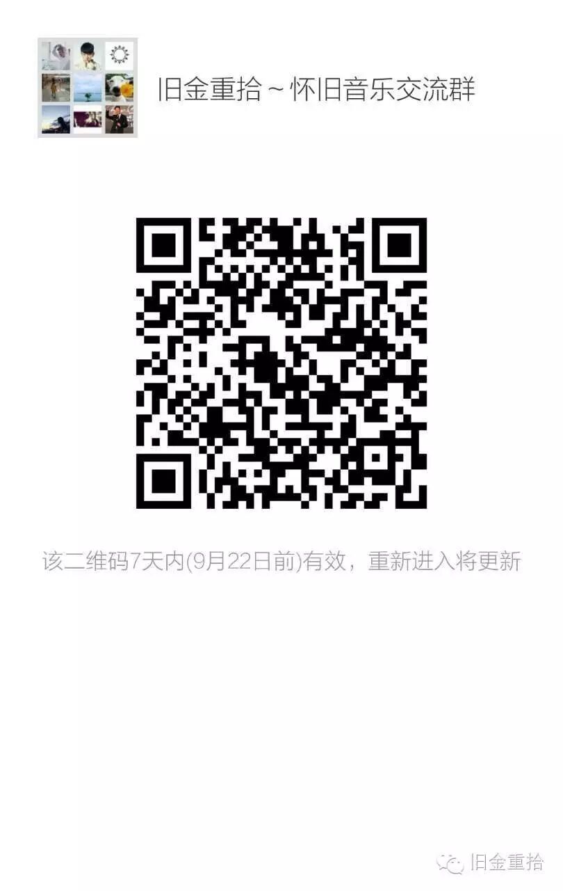 旧金重拾交流群开启了,粉丝们可以扫码进群和我们的小编还有粉友们互相交流,在群里分享自己喜欢的怀旧音乐,小编会将它收入麾下编辑好美文推送给大家!