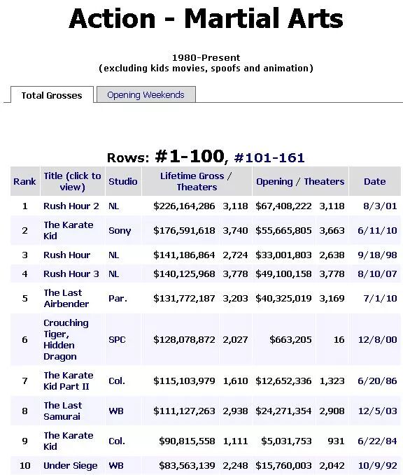 迄今为止,成龙的4部西片,依然是好莱坞动作片史上最卖座的前4名。