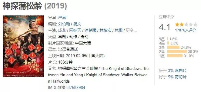 投资高达3亿,目前才回本1.5亿,豆瓣评分区区4.1。