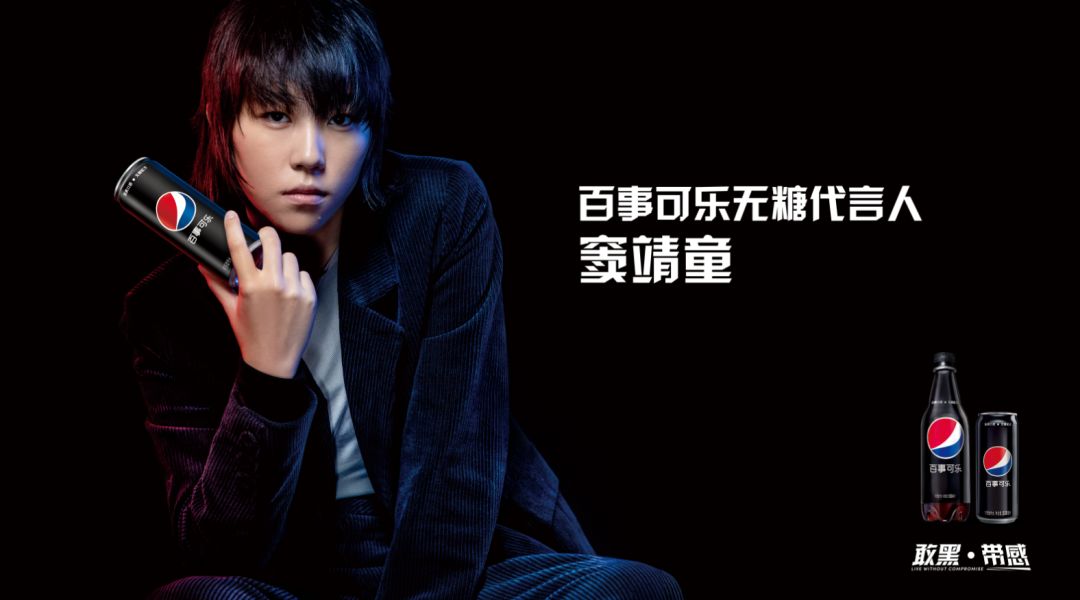 2017年,一贯敢于玩味时尚的百事可乐推出全新无糖细长罐设计,以纤长罐身刻画前卫极简主义,以深邃黑色激活纵情自我释放。百事也非常有眼光地看中了“无糖女孩”窦靖童,正式宣布其担任百事可乐无糖的形象代言人。