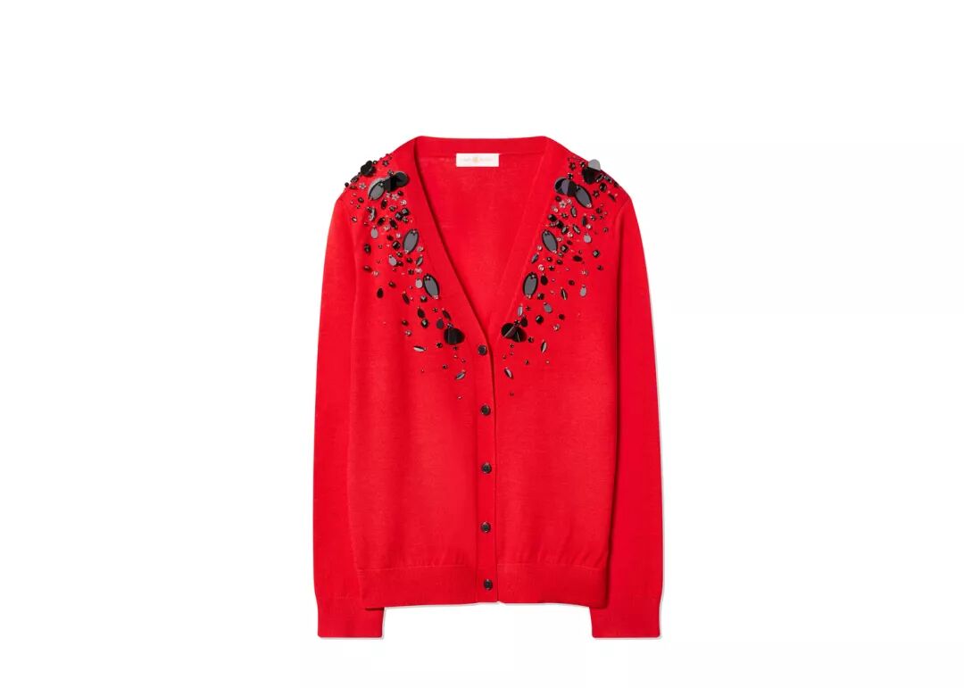 ⬆ Tory burch 钉珠 V 领羊毛衫