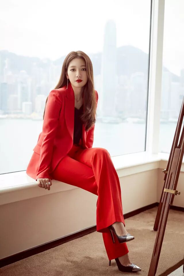 身材高挑的妹子可以尝试西装套装或者连身裤,秀出大长腿,秒变气场女王。