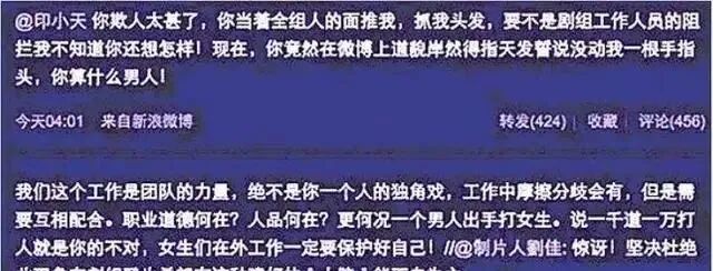 对印小天是各种内涵,人品不好,性格暴躁,还喜欢改剧本。