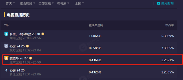 从剧作的收视来看,目前位于卫视收视第三,也足以说明这部《鼓楼外》的成功。可见即便没有强势的演员阵容,也能够拍出优质的作品,这一次于震的《鼓楼外》一出手,北京台就抽到了“王牌”。