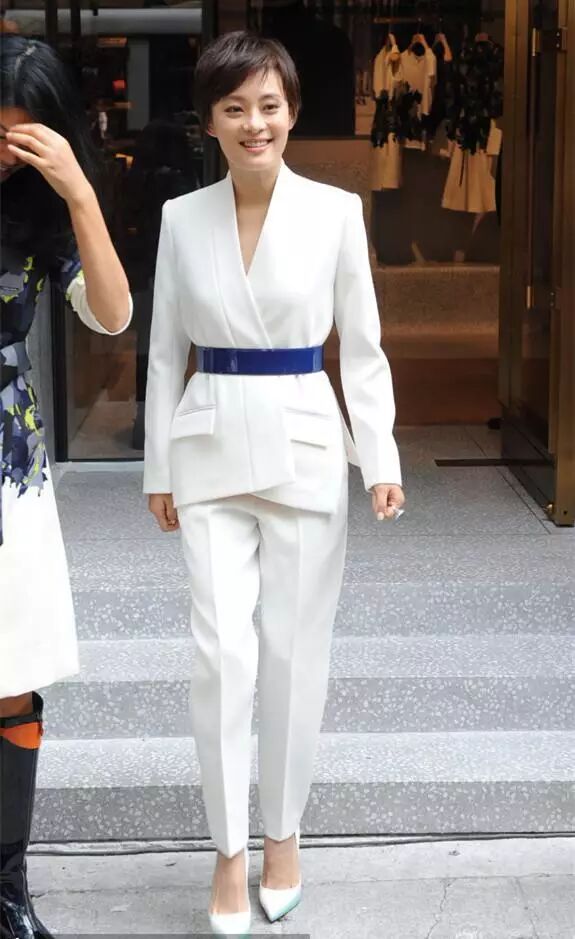OL装也能穿的很干练大方,穿白色西装套装,小清新又优雅大方。蓝色腰带与白色西服搭配的相得益彰,即提升了腰线,又点缀了整体的色彩。