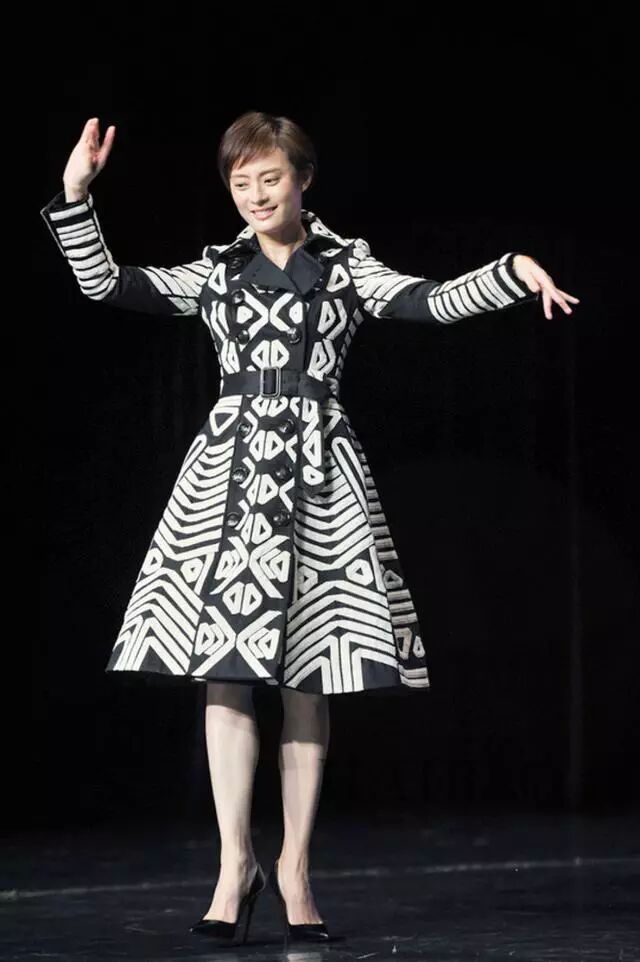 或者这样穿件几何条纹刺绣束腰风衣,搭配黑色尖头高跟鞋,尽显成熟干练感。