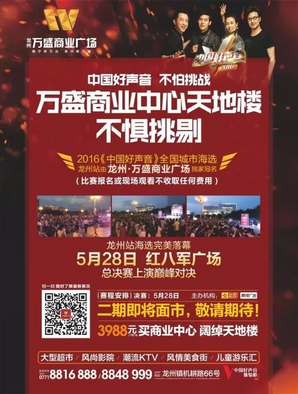 5月28日,《中国好声音》全国城市海选龙州赛区总决赛火热开唱!