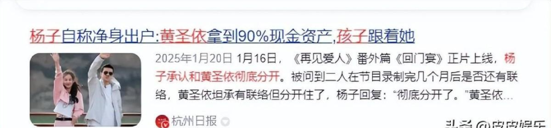 自从2025年初黄圣依和杨子在《再见爱人4》节目中高调揭开婚姻裂痕,半年光景过去,这对曾经的“顶流神仙眷侣”彻底走上了两条分叉路。41岁的黄圣依,如今素颜现身舞台,带娃奔波、事业“二次觉醒”;同龄的杨子,携大儿子安迪现身高铁站,父子状态让全网直呼“不敢认”。娱乐圈的豪门童话,终究败给了现实的鸡毛蒜皮——网友一边嗑瓜,一边感叹:谁输谁赢?谁真谁假?孩子的未来又该何去何从?
