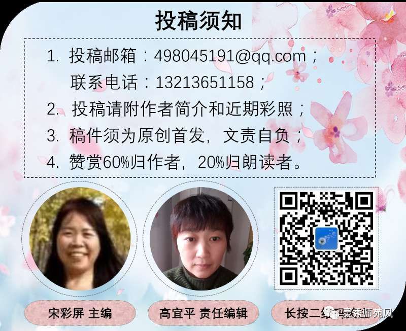 周永会,网名上善若水,毕业于洛阳市第二师范学校,现从事小学语文教学。热爱生活,喜欢朗读,希望通过朗读丰富自己的精神世界,提升自身的品味修养……