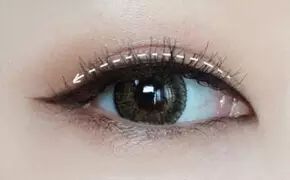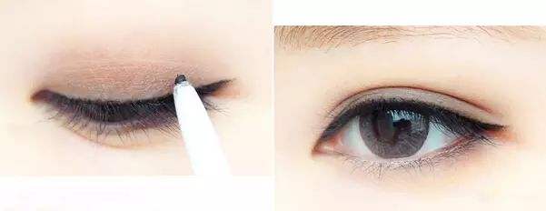 Step 5:用眼线笔沿着睫毛根部画一条眼线,眼尾颜色减淡并微微拉长。