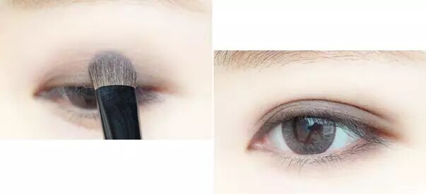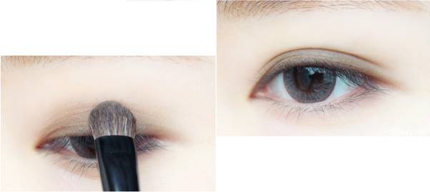 Step 2:用眼影刷沾取深棕色眼影晕染在上眼睑。