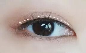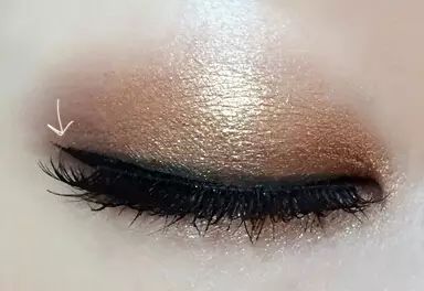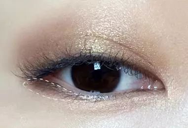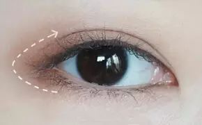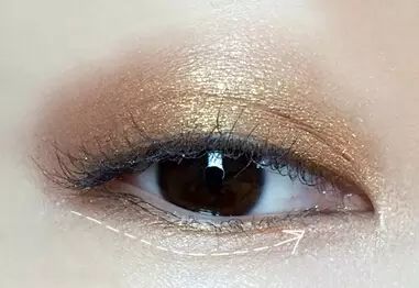 Step 6:下眼睑沿着睫毛根部用棕色珠光眼影晕染,用眼影刷从眼尾往前晕染,在快接近眼头位置时即收笔。