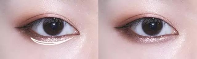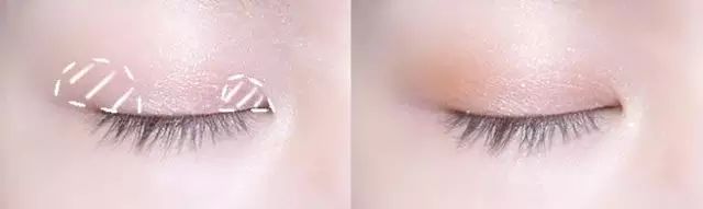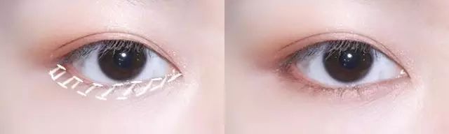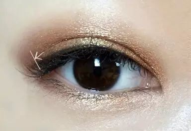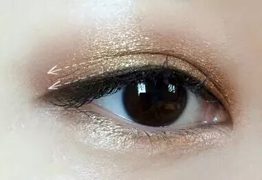 Step 2:在眼头和卧蚕处用香槟色珠光眼影提亮。