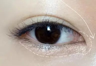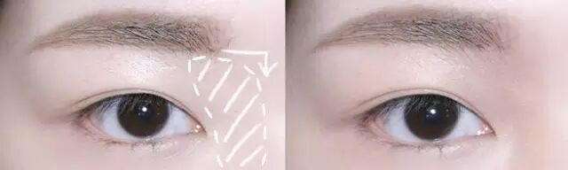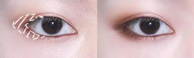 Step 3:上眼皮眼尾用浅棕色眼影晕染,沿着眼窝轮廓晕染能让眼睛看起来更加立体。