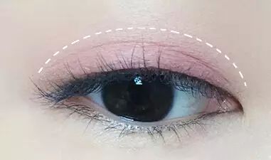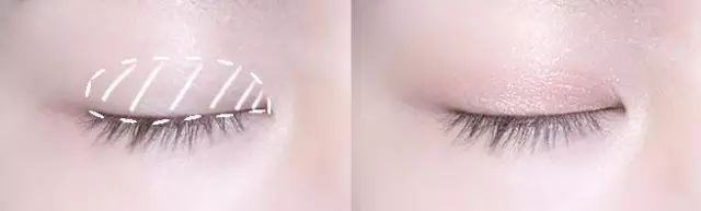 Step 2:接着用紫粉色眼影在眼皮上大面积打底。