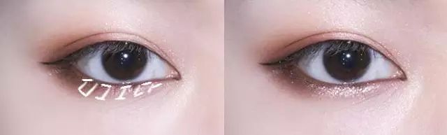 Step 5:紧贴眼睫毛根部画一条黑色的眼线。