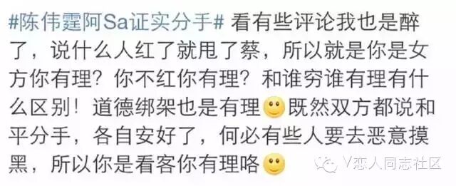 然而正当外界以为大师兄跟阿Sa打的火热之时,今年9月,陈伟霆突然发表长微博承认已与阿sa情变,五分钟后,阿sa也发表一模一样内容的微博证实两人恋情已成往事。