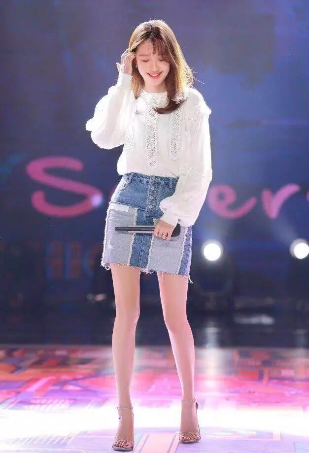 接下来我们再来看看孙怡的一些其他时尚搭配,上节目孙怡的搭配依旧以是清新风为主,这件白色半透镂空剪裁的上衣,是泡泡袖样式,看起来遮肉显瘦还特甜美,搭配牛仔裙细腿依旧吸睛!