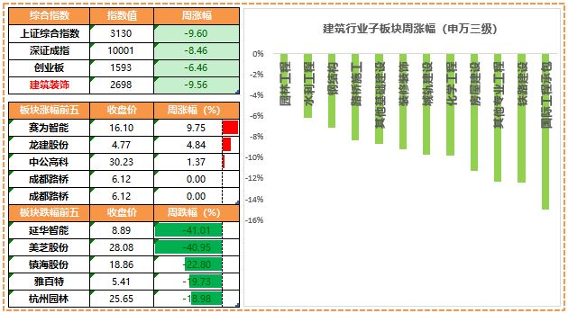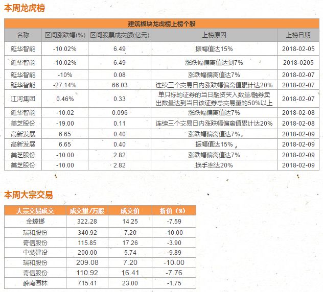 本周市场产生了较大幅度的下跌,建筑板块也有较大跌幅,行情更多受到投资行为的影响,行业基本面未有较大变化。大幅调整过后,人气的恢复可能需要一定的时间,择股宜更加基本面。