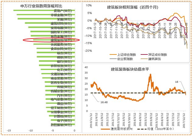 我们仍旧持续推荐大建筑央企,其逻辑在于市场集中度提升下的稳健增长,从整个行业来说,即使本周大票下跌更多,但一年来看大央企的股价表现确实相对好一些;2017年涨大票、跌小票的泥沙俱下之后,我们在2017年底开始推荐一批估值安全的优质小票,比如东易日盛、中材国际、苏交科、中设集团、广田集团、奇信股份等等,部分公司的估值已回到上轮牛市之前的水平。