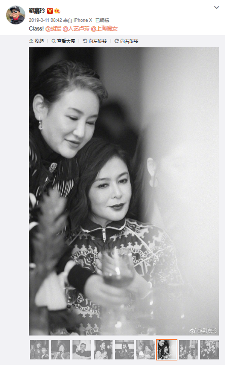 两人虽没有合照,但当天刘嘉玲发的微博里还特意发了张关之琳与别人的合照,看来嘉玲心里早就没有芥蒂了。