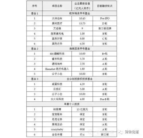 其中处在IPO审核阶段的大洋泊车估值超10亿;正在筹划境外上市的纳恩博平衡车项目在今年2月估值已达15亿美元,若能在美国上市,按照纳恩博A轮8,000万美元的融资额度,跟投的胡海泉将获利颇丰。