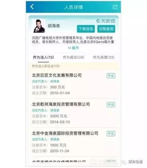 胡海泉的公司,图来自天眼查