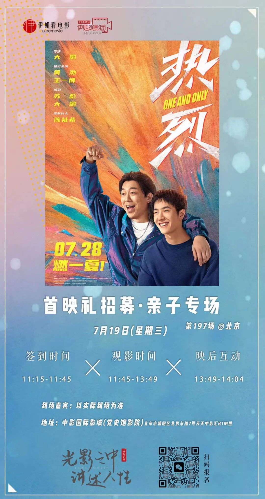 伊姐观影团将于7月19日11:45在中影国际影城(党史馆影院)组织电影《热烈》首映礼——亲子专场。