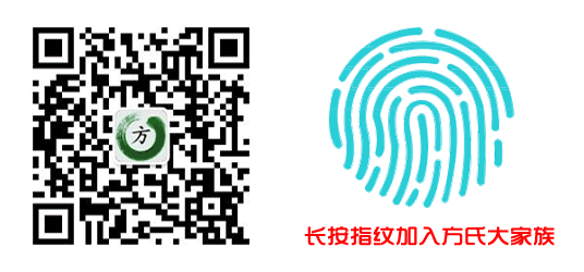 无论您在哪里,只要您姓“方”,就请您先点击上面的蓝色字体“方氏大家族”,再点击“关注”,即可加入中华方氏大家族。弘扬方氏文化,传播方氏正能量,结识天下方氏宗亲。
