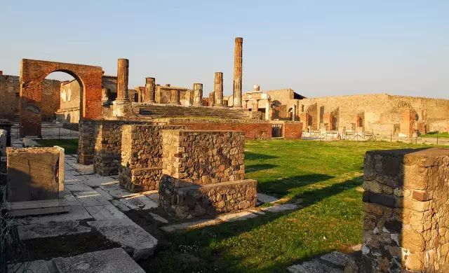 上午:酒店早餐后前往千年古城-庞贝(车程约3小时),公元79年维苏威火山喷发的一瞬间被火山灰埋在了地下,却因此保留了大量古罗马帝国的建筑遗迹和艺术文物,成为世界上最为著名的古城遗址,游览古城庞贝★,置身于千年古迹,感受当时庞贝人的智慧,于市集广场上遥望依然高耸的维苏威火山,夕阳西下景致万千;贴心安排古城专业中文全面讲解。