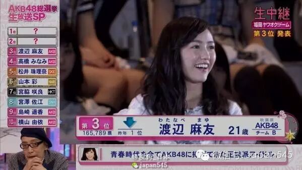 「第7回AKB48选拔总选举」结果揭晓。第1位:指原莉乃 194049票,第2位:柏木由紀 167183票,第3位:渡辺麻友 165789票,第4位:高橋みなみ 137252票,第5位:松井珠理奈 105289票,第6位:山本彩 97866票,第7位:宮脇咲良 81422票。