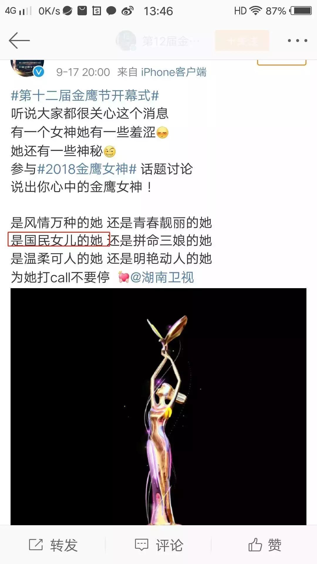 就在粉丝兴致冲冲的以为今年金鹰节女神非热巴莫属时,其实这只是刚开始,真正的金鹰女神另有其人。