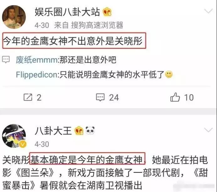本届金鹰女神也有大V爆料:早已内定关晓彤。