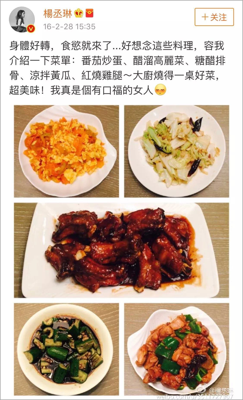 杨丞琳不止一次在微博“炫耀”李荣浩的厨艺: