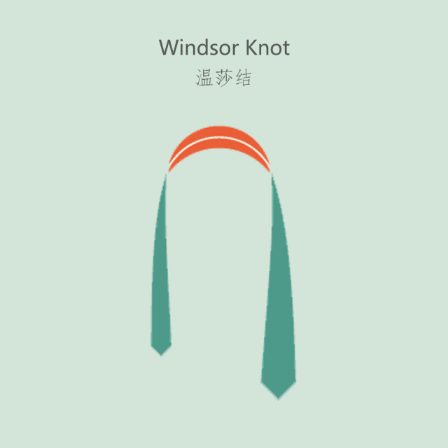 源自于温莎公爵,温莎结适用于任何正式场合。温莎结比较大,所以适合领子大的衬衫。