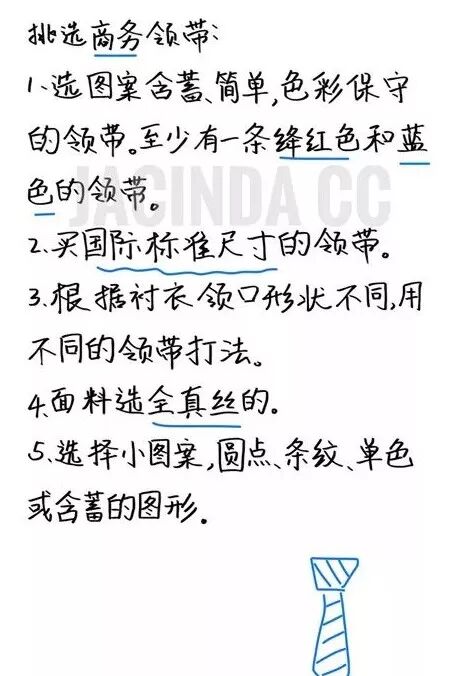 作为商务人士如何挑选领带呢?佳佳老师也用一张图告诉大家。