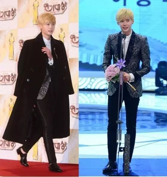 2013 SBS演技大赏,带有印花的西装非常华丽,配上黄色头发,很像小王子。